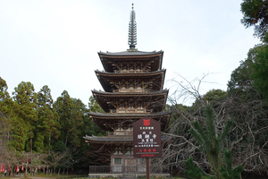中大兄皇子とともに大化の改新を断行した藤原鎌足を祭神としています。社名は、二人がこの山で蘇我氏討伐の密談を交わしたという伝承に由来します。豪華な社殿は、日光東照宮のモデルになったと言われています。本殿では室町時代の絵巻などを鑑賞しました。談山神社は奈良県屈指の紅葉の名所ですが、今回はシーズンオフでお土産屋もシャッターがほぼ閉っていました。