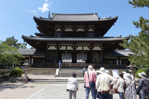 バス内で事前にガイドさんから法隆寺にまつわるミニ知識を学習していたおかげで、法隆寺境内内の建物や仏像について確認しながら見学することができました。法隆寺境内から夢殿まで行き、バスに帰るまで約一時間半の道のりでした。炎天下の中、御高齢の方もおられましたが、ガイドさんの水分補給の指示と、できるだけ日陰を歩くように配慮していただいたおかげで、全員無事に見学をすることができました。